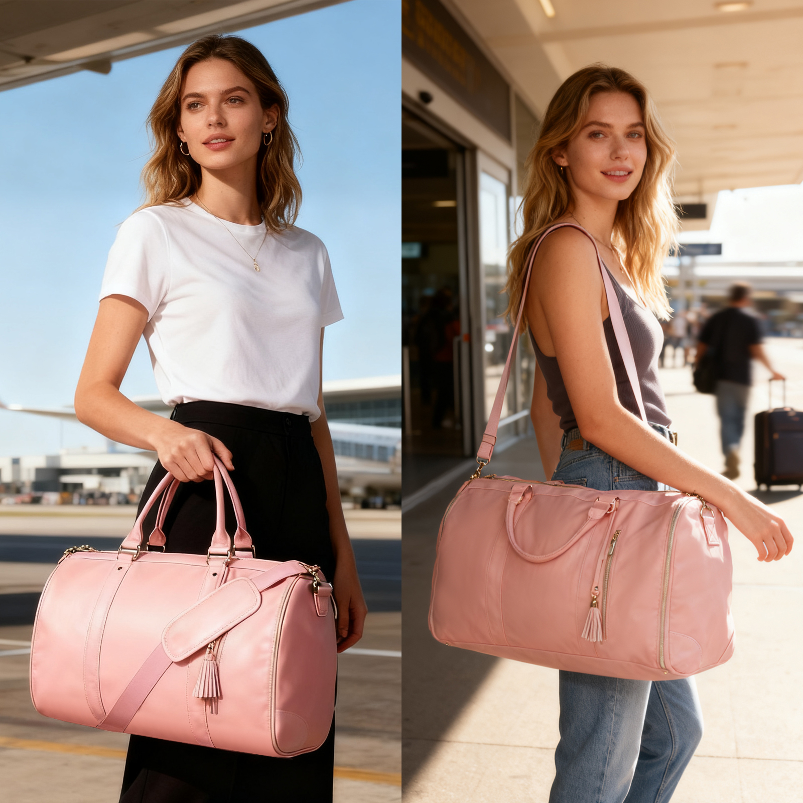 • ✅Durable & Water-Resistant: Made from premium leather, it resists scratches, tears, and water. Non-slip zippers ensure secure closure, making this lightweight bag perfect for weekend getaways and business trips.