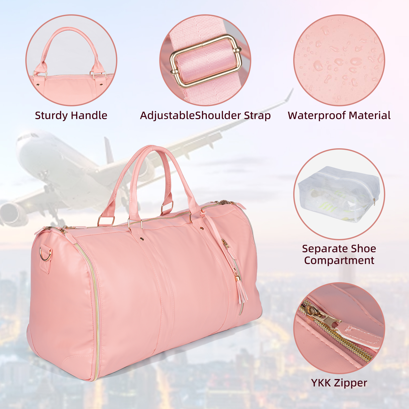 Joyous Leather Garment Duffel Bag for Travel–Waterproof Large Capacity Convertible Carry on Garment Bag with Shoe Compartment